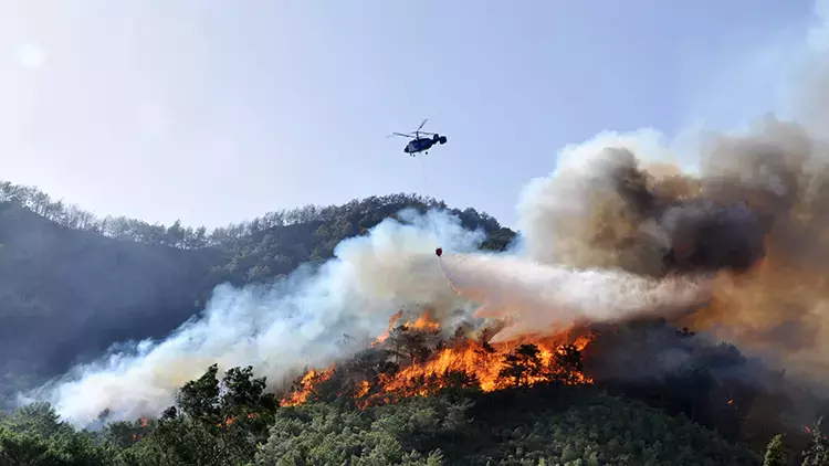 ويجري التدخل في حريق الغابات في منطقة أكسو في أنطاليا جواً وبراً.