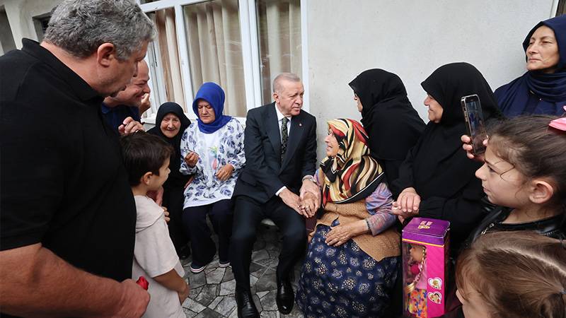 أردوغان عانق جيرانه وتودد إليهم، وأهدى الألعاب للأطفال الذين قدموا إليه وأظهروا اهتمامهم به. وخلال زيارة أردوغان، شعر بعض جيرانه بلحظات عاطفية ولم يتمكنوا من حبس دموعهم.