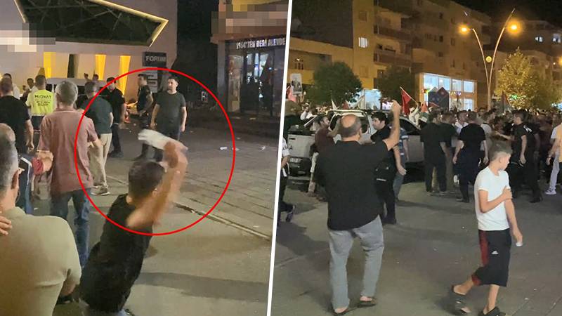 وهاجمت المجموعة مطعمًا وفرعًا لسلسلة مستحضرات تجميل بالحجارة والزجاجات البلاستيكية، وتسبب ذلك في أضرار بأماكن العمل.