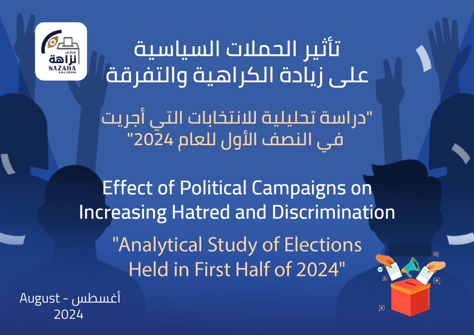 القاهرة (زمان التركية)ــ أصدر ائتلاف “نزاهة” المعني بمتابعة الانتخابات حول العالم، دراسة بعنوان “تأثير الحملات السياسية على زيادة الكراهية والتفرقة” تتناول بالرصد والتحليل ظاهرة تصاعد خطاب الكراهية خلال الحملات السياسية في الانتخابات التي شهدتها العديد من دول العالم، خلال النصف الأول من عام 2024، ومدى تأثيرها على شفافية ونزاهة الانتخابات، وذلك في دول: المملكة المتحدة وفرنسا، وانتخابات البرلمان الأوروبي، وروسيا، والهند، وجنوب إفريقيا، والسنغال، بالإضافة لحملات الرئاسة الأمريكية.