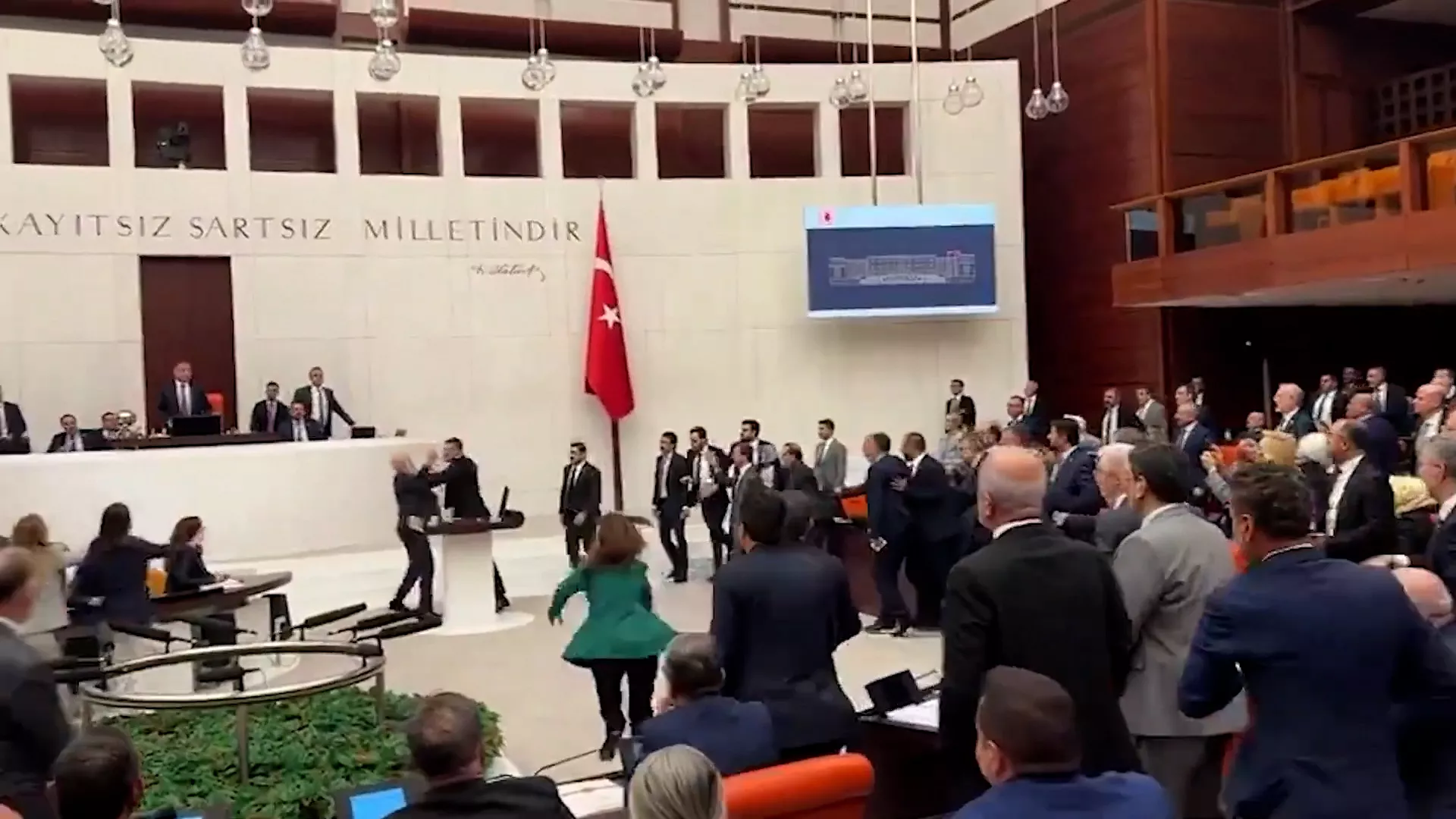 وخلال انعقاد البرلمان يوم الجمعة لتقييم قرار المحكمة الدستورية بشأن ”بطلان“ إقالة النائب عن حزب العمال التركي “جان أتالاي” من البرلمان، هاجم النائب عن حزب العدالة والتنمية في إزمير ألباي أوزالان النائب عن حزب العمال التركي في إسطنبول أحمد شيك بقبضته أثناء إلقائه كلمة على المنصة.