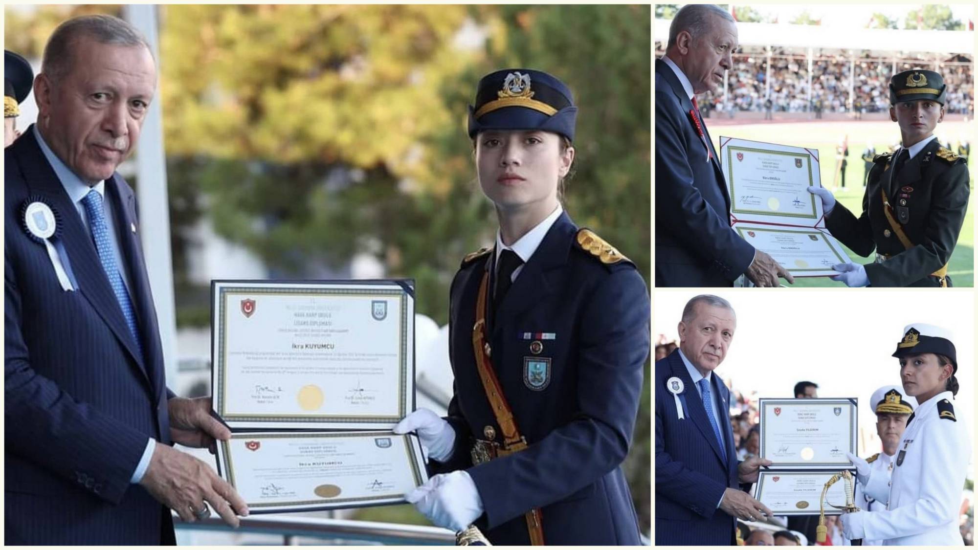 وفي كلمة ألقاها في الحفل، قال أردوغان: ”بالطبع، لديّ سعادة، يجب أن أقولها. لقد حصلت بناتنا على المراكز الأولى في كل من حفل تخرج الكلية الحربية البرية، وحفل تخرج الكلية الحربية البحرية، وحفل تخرج الكلية الحربية الجوية. وهذا بالطبع وسام شرف لنا. وهذا يعني أن فتياتنا قادرات على النجاح، فضلاً عن نجاحهن كجنديات“.