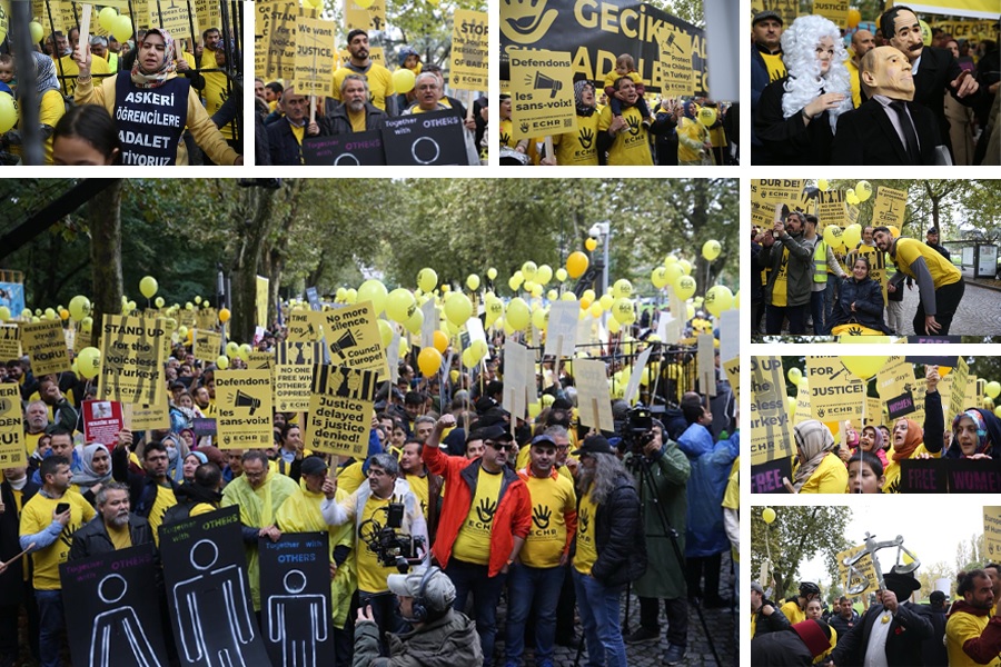 ومكث العديد من المشاركين، الذين يرتدون قمصان تحمل عبارات “الاتفاقية الأوروبية لحقوق الإنسان” و” المحكمة الأوروبية لحقوق الانسان”، حتى نهاية الوقفة على الرغم من هطول الأمطار.