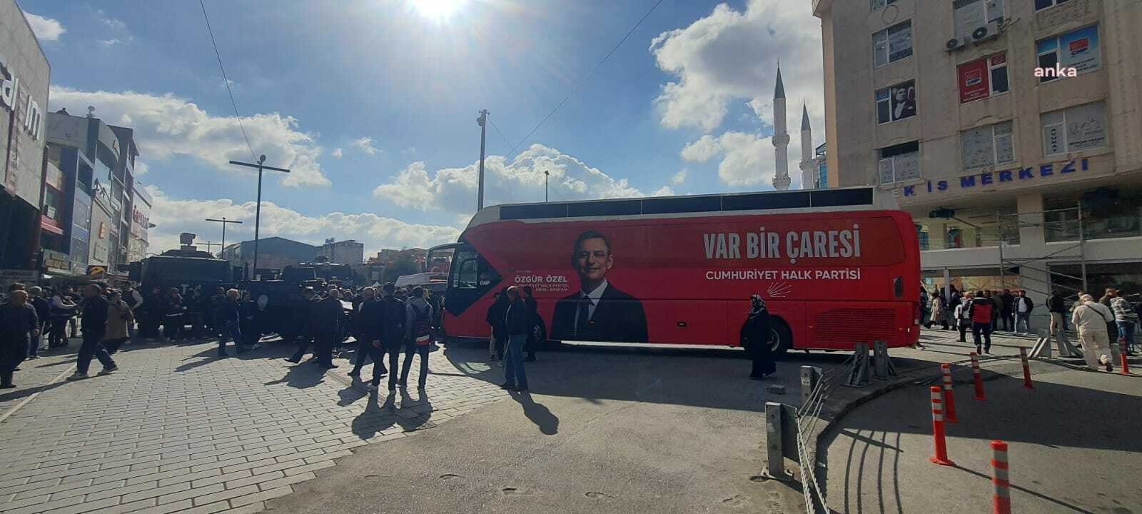 ومنعت قوات الأمن المنتشرة بالمنطقة حافلة حزب الشعب الجمهوري من الوصول إلى ساحة البلدية مما دفع عددا من المواطنين إلى الاحتجاج على منع الحافلة رافعين شعارات “الحق والحقوق والعدالة”.