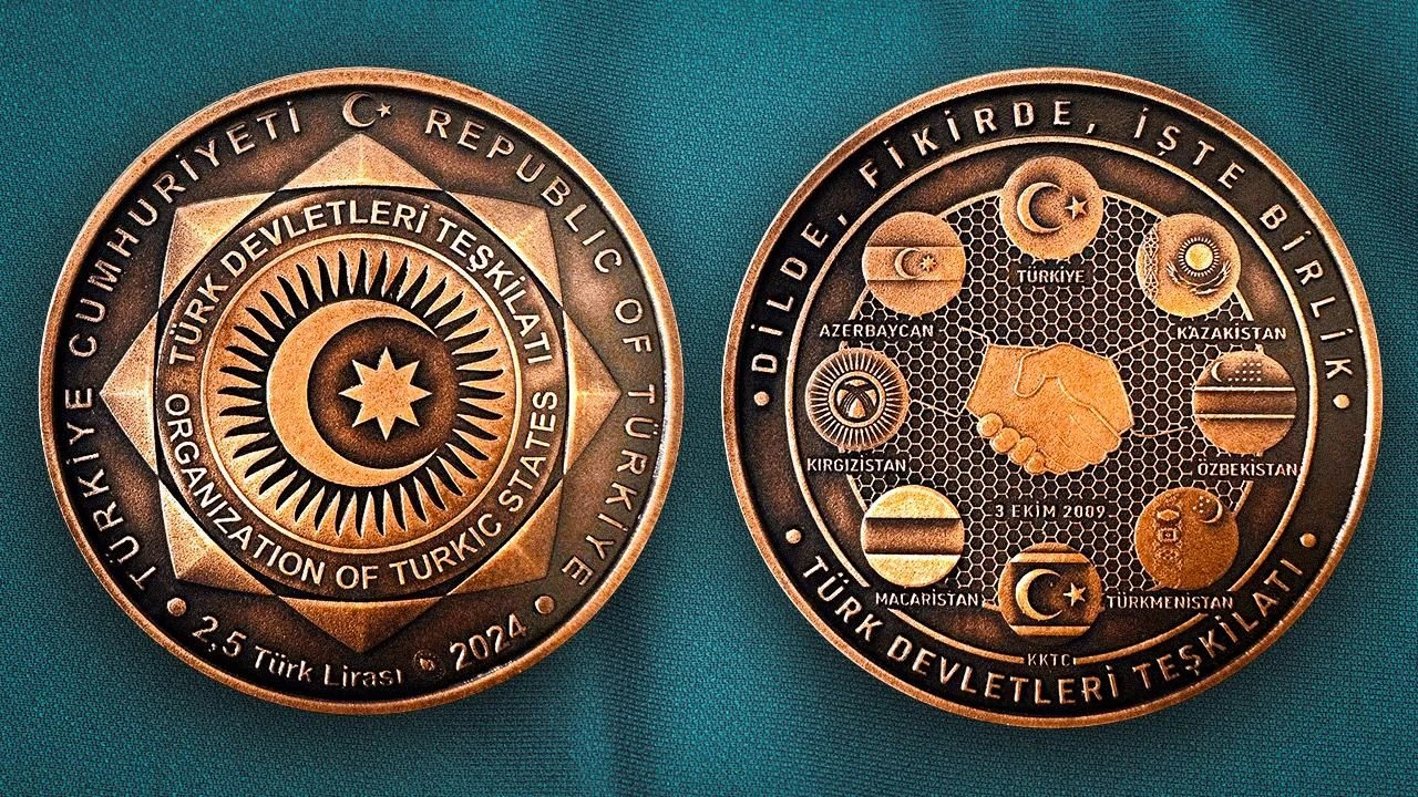 أنقرة (زمان التركية) – صُممت عملة تذكارية أُعدت للقمة الحادية عشرة لرؤساء دول وحكومات منظمة الدول التركية، بتفاصيل ذات مغزى ترمز إلى الروابط التاريخية والتعاون بين الدول التركية.