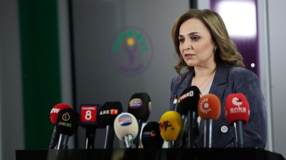 وتابعت عائشة جول: “نقول لأولئك الذين يعتقدون أنهم يستطيعون منع كل شيء، ليس هذا هو الطريق، سنستمر في التواجد في الشوارع والميدان، لن تتمكنوا من ثنينا، حزب المساواة الشعبية والديمقراطية يقول إننا مستعدون للمصافحة، يدنا ممدودة منذ سنوات من أجل سلام عادل ومشرف في تركيا”.