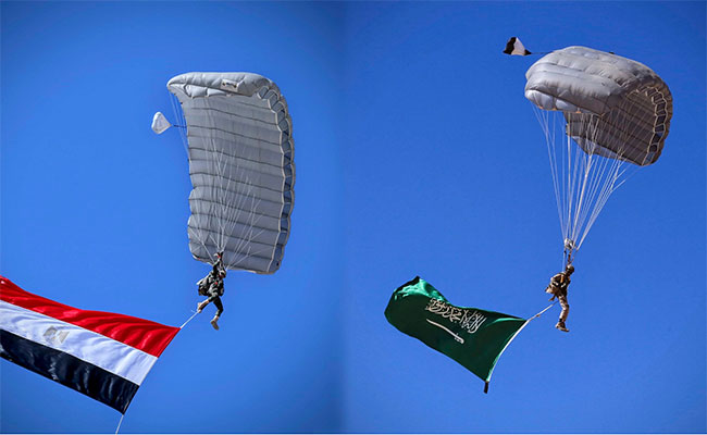 وشهدت المرحلة النهائية من التدريبات “قفزة الصداقة” الرمزية التي شارك فيها جنود مظليون مصريون وسعوديون.