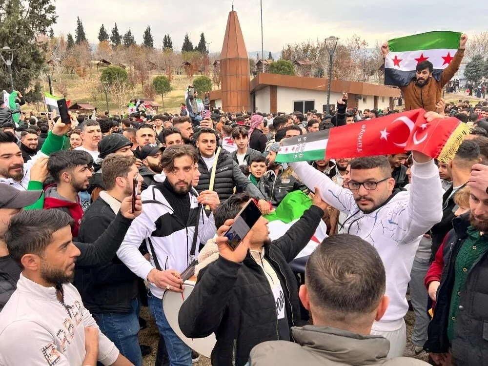 كما احتفل السوريون في منطقة غولباشي في أديامان في وسط المنطقة، حاملين الأعلام التركية وأعلام الجيش الوطني السوري بأيديهم.