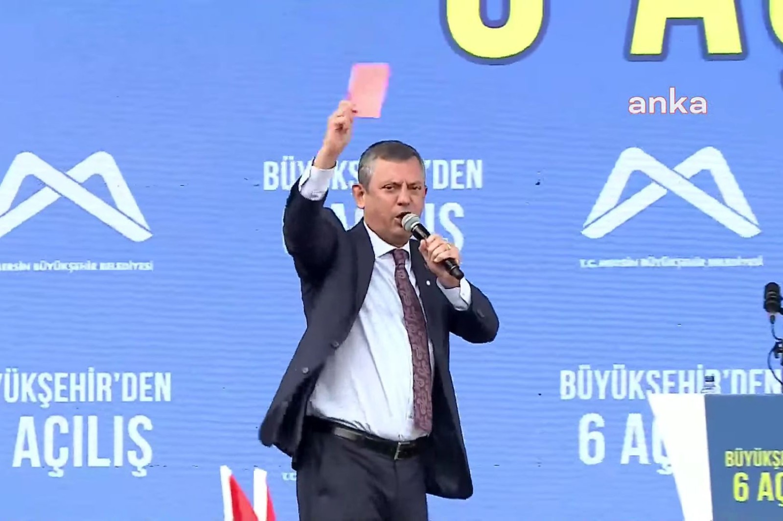 وفي كلمته التي ألقاها في حفل الافتتاح الجماهيري لبلدية مرسين، كانت مفاجأة أوزيل هي إظهار ”بطاقة حمراء“.
