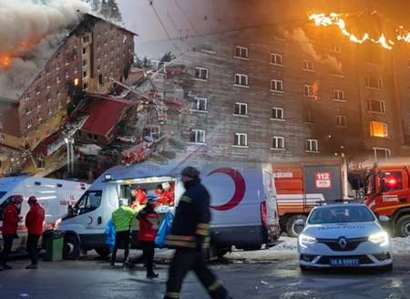 واندلع حريق في فندق غراند كارتال في مركز بولو كارتاكلايا للتزلج في بولو كارتاكلايا، حيث كان يقيم 238 شخصاً، وقد أدى الحريق إلى مقتل 79 شخصاً.