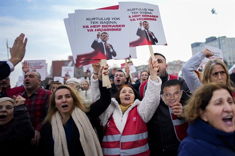 ويواجه إمام أوغلو أحكامًا محتملة بالسجن بسبب سلسلة من التهم الموجهة إليه، بما في ذلك انتقاد التحقيقات القانونية التي تستهدفه ورؤساء بلديات آخرين. وفي عام 2022، حُكم عليه بتهمة إهانة مسؤولين حكوميين بعد أن تحدث ضد قرار عام 2019 بإلغاء الجولة الأولى من الانتخابات المحلية، والتي فاز بها. وإذا أيدت محكمة أعلى إدانته، فقد يُمنع من ممارسة السياسة لمدة خمس سنوات.