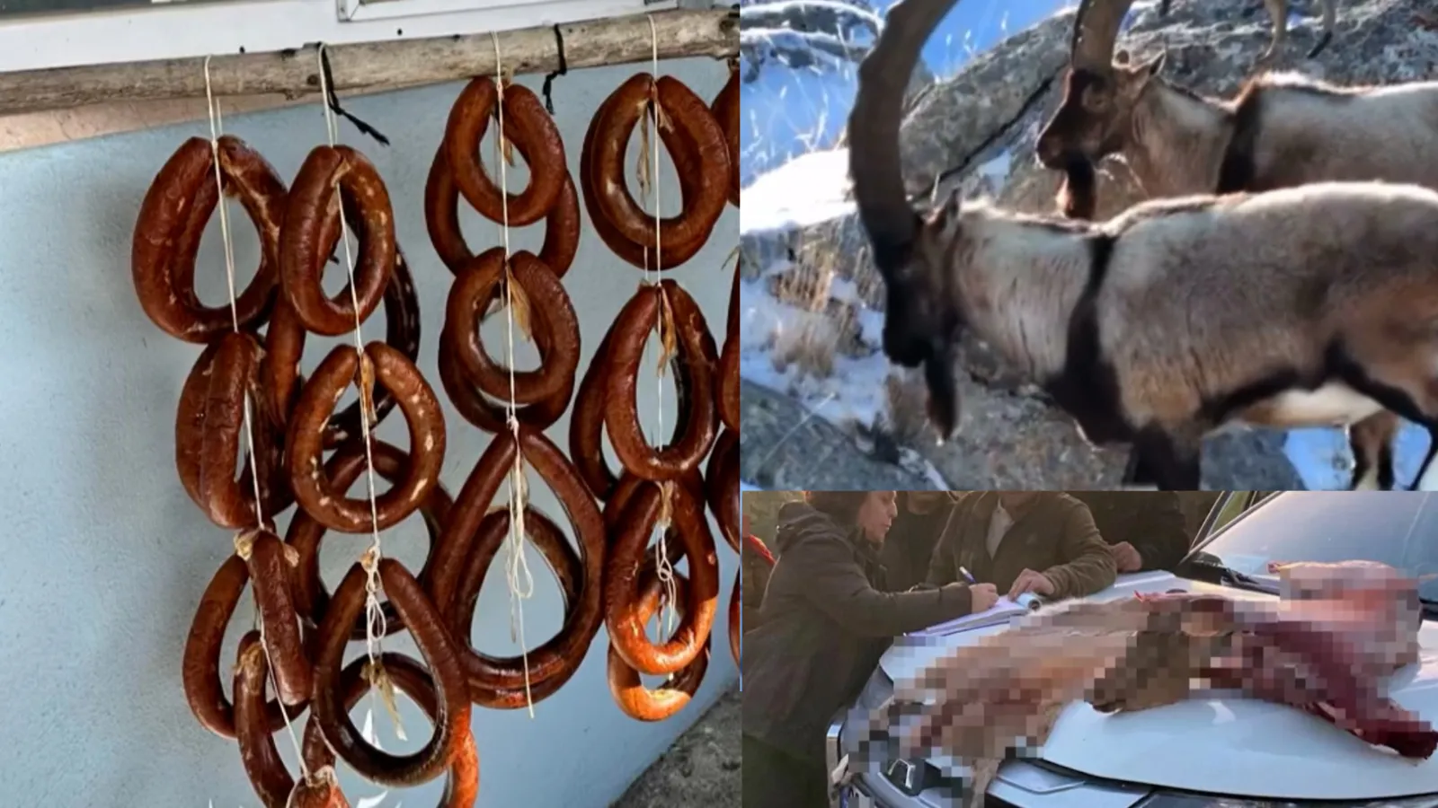 وخلال التفتيش، تم ضبط بندقية طويلة الماسورة مع منظار بندقية، ومسدسين غير مرخصين، و97 طلقة رصاص، ومنظارين للبندقية، و25 خرطوشة مافزر، ومنظارين عن بعد، وجهازي لاسلكي، و3 جلود ماعز جبلي محمي ولحوم ونقانق مصنوعة من هذه اللحوم.