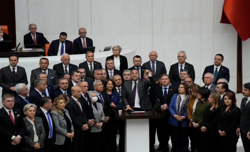 أنقرة (زمان التركية) – اعتلى جميع نواب حزب الشعب الجمهوري منصة البرلمان، اليوم الخميس، مرددين هتافات ضد الحكومة، وقطعت قناة البرلمان التركي التلفزيونية البث، وتم تعليق الجلسة في البرلمان.