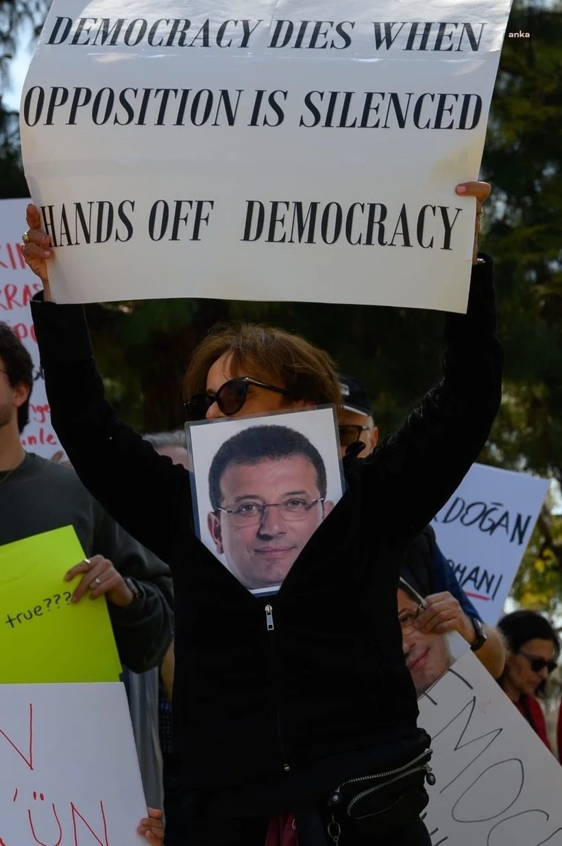 أنقرة (زمان التركية) – تجمعت الجالية التركية أمام القنصلية العامة التركية في لوس أنجلوس للاحتجاج على اعتقال عمدة بلدية إسطنبول أكرم إمام أوغلو، ورفعوا لافتات معارضة لحكومة الرئيس التركس، رجب طيب أردوغان.