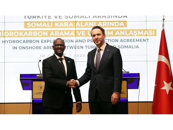 وجرى توقيع اتفاقية بين تركيا والصومال للتنقيب عن الهيدروكربونات وإنتاجه في الأراضي الصومالية، بحضور وزير الطاقة والموارد الطبيعية التركي، البرسلان بايراقدار، ونظيره الصومالي وزير البترول والثروة المعدنية، ضاهر شير محمد.