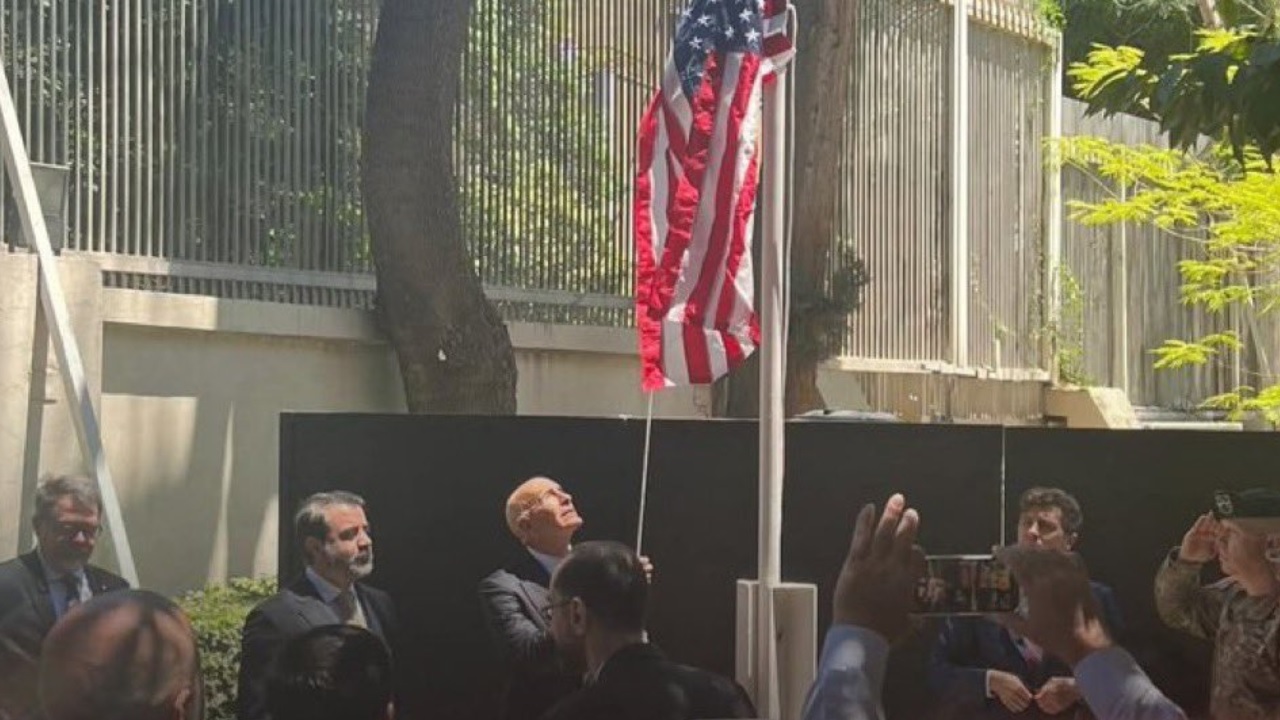 أنقرة (زمان التركية) – رفع السفير الأمريكي لدى تركيا والمبعوث الخاص لسوريا، توم باراك، العلم الأمريكي على مقر إقامة السفير الأمريكي في دمشق.