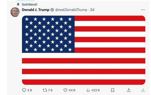 شارك الرئيس الأمريكي ترامب صورة لعلم أمريكي على حسابه في X (تويتر سابقًا) وقام بتثبيتها.