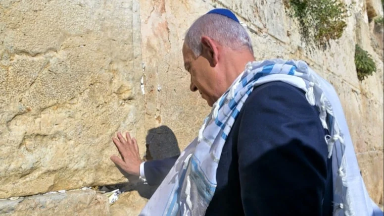 وشارك نتنياهو مقطع فيديو عبر حسابه على وسائل التواصل الاجتماعي لزيارته إلى حائط (البراق) المبكى. وفي الفيديو، ظهر نتنياهو مرتديًا شال الصلاة الذي يُعرف باسم “التيليت”، وذكر أنه ترك رسالة عند الحائط مكتوب عليها: “الأمة قامت. شعب إسرائيل حيٌّ”.