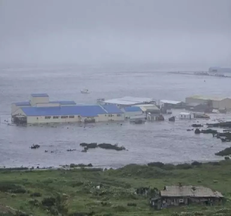 وأغرقت موجات تسونامي الأولى التي أعقب الهزة الأرضية جزء من مدينة سيفيرو كوريلسك.