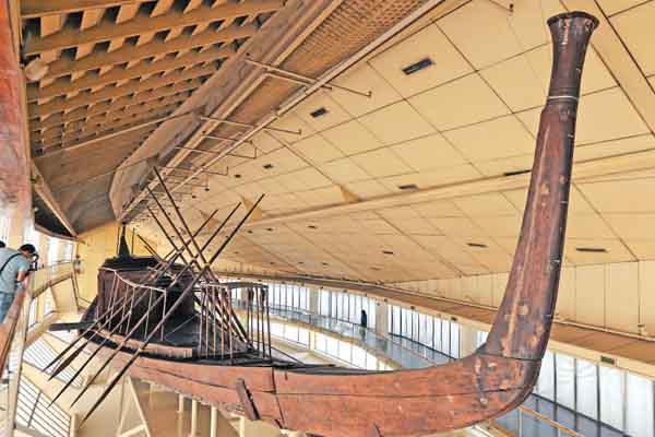 وتعرض شاشات تفاعلية تفاصيل الاكتشاف الدرامي لأول قارب بجوار الهرم الأكبر خوفو، حيث تم دفنه سليماً في حفرة من الحجر الجيري ومختوماً منذ العصور القديمة.