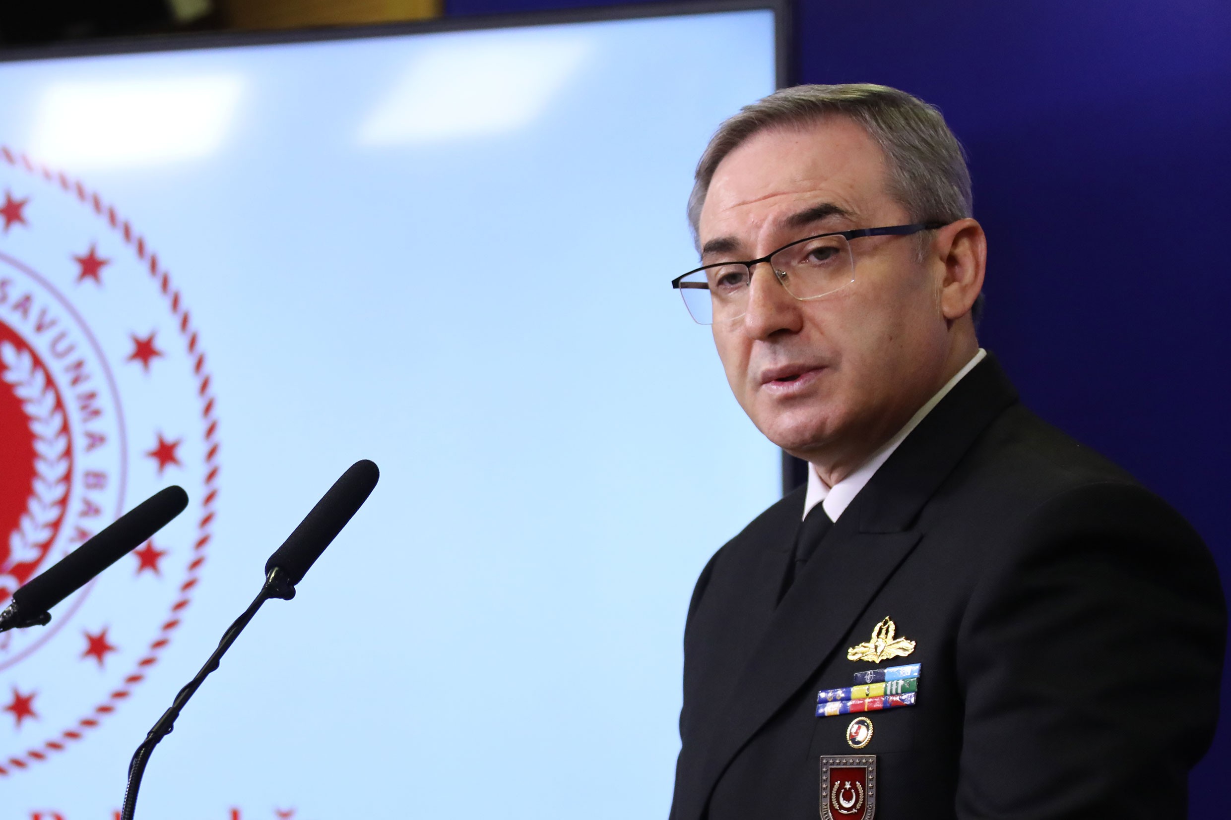 وجاء في بيان للمتحدث باسم الوزارة، اللواء البحري زكي أكتورك، خلال المؤتمر الصحفي الأسبوعي، أن تركيا “تنفذ تدابير ومبادرات في إطار مبدأ الملكية الإقليمية ضد التهديدات البحرية المرتبطة بالحرب”.