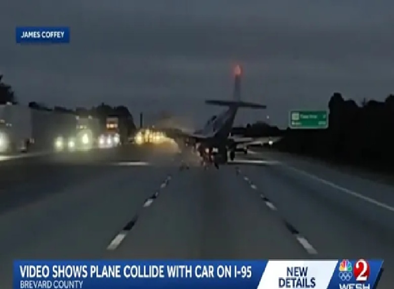 ويشير البيان الصادر عن دورية الطرق السريعة بولاية فلوريدا إلى أن طائرة متعددة المحركات اصطدمت بسيارة من طراز تويوتا كامري 2023 أثناء سيرها بالجناح الجنوبي لطريق I-95 في حوالي الساعة 17:45 من يوم الإثنين.