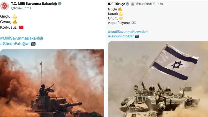 ولاحظ مراقبون أن حساب الجيش الإسرائيلي تعمد استخدام وسم “#صورة_اليوم” باللغة التركية، وهو ذات الوسم الذي تضعه وزارة الدفاع التركية باستمرار تحت منشوراتها، بالإضافة إلى استبدال وسم “#وزارة_الدفاع_الوطنية” بوسم “#قوات_الدفاع_الإسرائيلية”، مما اعتبره متابعون محاولة واضحة للإشارة أو “المناوشة” الرقمية عبر استخدام ذات القالب البصري واللغوي التركي.